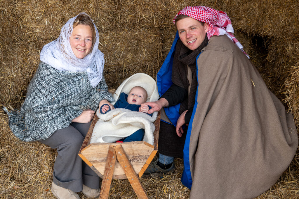 Aan het einde van de wandeling stonden twee ezels en een grote ster bij de kerststal. In deze kerststal zaten de trotse ouders Jozef en Maria en lag een tevreden kindje Jezus te slapen in een kribbe. Het leek wel Bethlehem in Lemele.