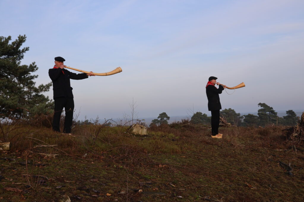 Onderweg waren meerdere midwinterhoornblazers, die over heel de Lemelerberg te horen waren. Bovenop de berg was er nog een extra opwarmertje in de vorm van glühwein en kon je genieten van de kerstliederen van het koor Pallet uit Luttenberg.