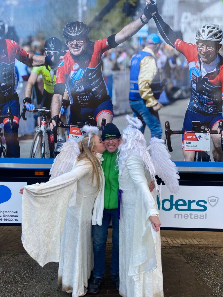 Bij de start kregen ze allemaal een ACON-kerstmuts uitgereikt en werden ze op weg geholpen door een vrolijke kerstman.