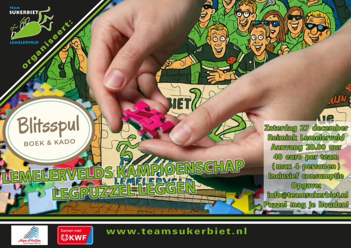 Zet de leesbril op, strek de armen en oefen alvast met die puzzelstukjes… want Team Sukerbiet organiseert op zaterdag 27 december in samenwerking met Blitsspul voor het eerst het Legpuzzelkampioenschap van Lemelerveld!